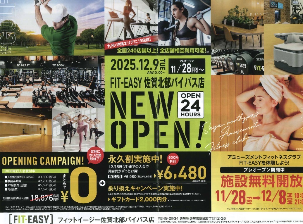 - 2025.12.03フィットイージー佐賀北部バイパス店 開店【佐賀県初上陸!】フィットイージー佐賀北部バイパス店、ついにオープン!24時間アミューズメントフィットネスで想像以上の楽しさを!フィットイージーが、ついに佐賀県初出店となる**「フィットイージー 佐賀北部バイパス店」** […]